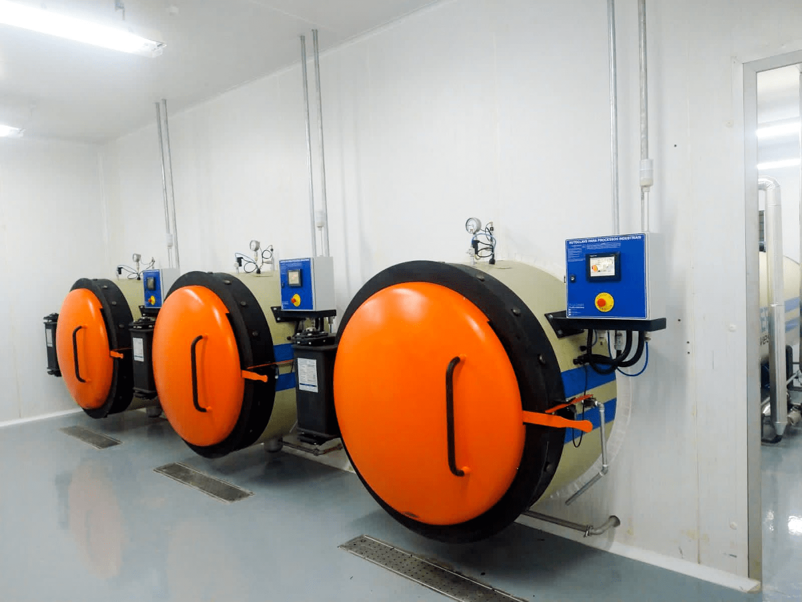 Autoclaves para esterilização de substratos, meios de cultura e insumos microbiológicos. Métodos de processamento térmico: Vapor ou Ar-Vapor. As Autoclaves podem ser equipadas com uma porta ou duas portas para operação em ambientes controlados com barreira sanitária dividindo a área limpa da área suja. As Autoclaves são muito utilizadas para: